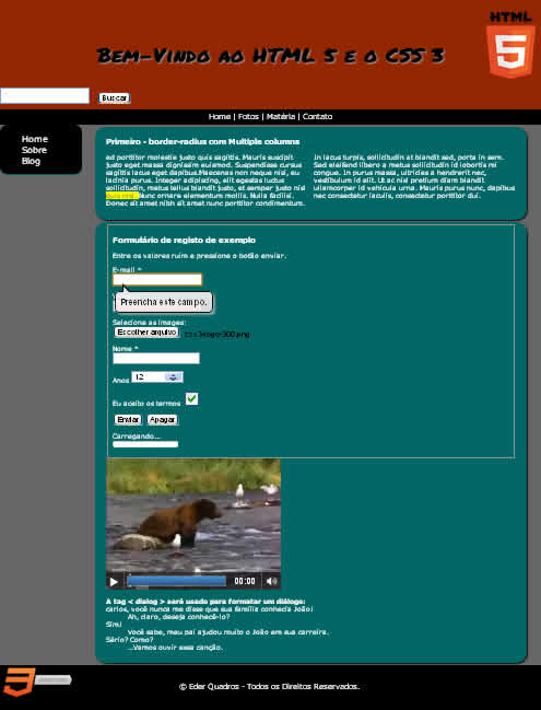 Essa semana eu fiz alguns testes de HTML 5 e CSS 3 com um layout bem simples.