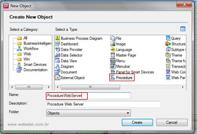 Agora vamos criar a procedure como o nome de ProcedureWebServer
