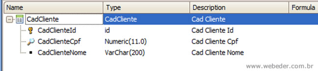 Primeiramente vamos criar uma transação com a seguinte definição de dados: CadClienteId, CadClienteCpf e CadCliente.