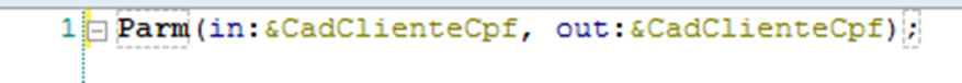 E dentro da procedure vamos criar uma variável que vai ser responsável por receber o nosso parâmetro do CPF quando consultado e a resposta que será o nome do cliente.