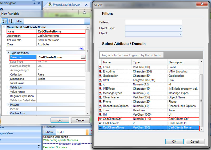 Criaremos variável para CadClienteCpf e CadClienteNome que pega o atributos que vem da nossa Transação feito antes.