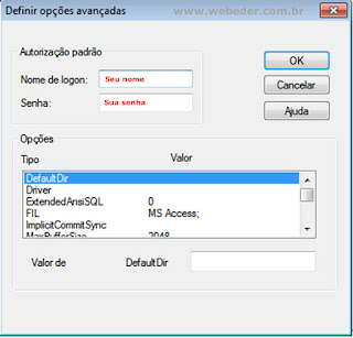 Agora selecione o driver neste caso estamos usando o exemplo do Access, mas poderia ser ORACLE ou SQL Server.