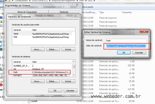 Vá no ícone do Meu computador -> botão direito -> selecione Propriedades -> Clique em Alterar configurações-> clique na aba avançado-> clique em variáveis de ambiente -> ir para o sistema variáveis - editar caminho -> adicionar o seu caminho php e zend após o ponto e vírgula “ ; ” se não tiver coloque. Somente depois cole o caminho do php.