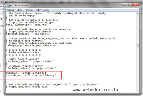 Agora vamos abrir o php.ini e fazer uma busca pelo path:
