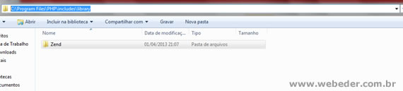 2º Dentro da pasta C:\Program Files\PHP crie uma pasta com o nome de includes dentro dela largue a library do pacote do Zend dentro.
